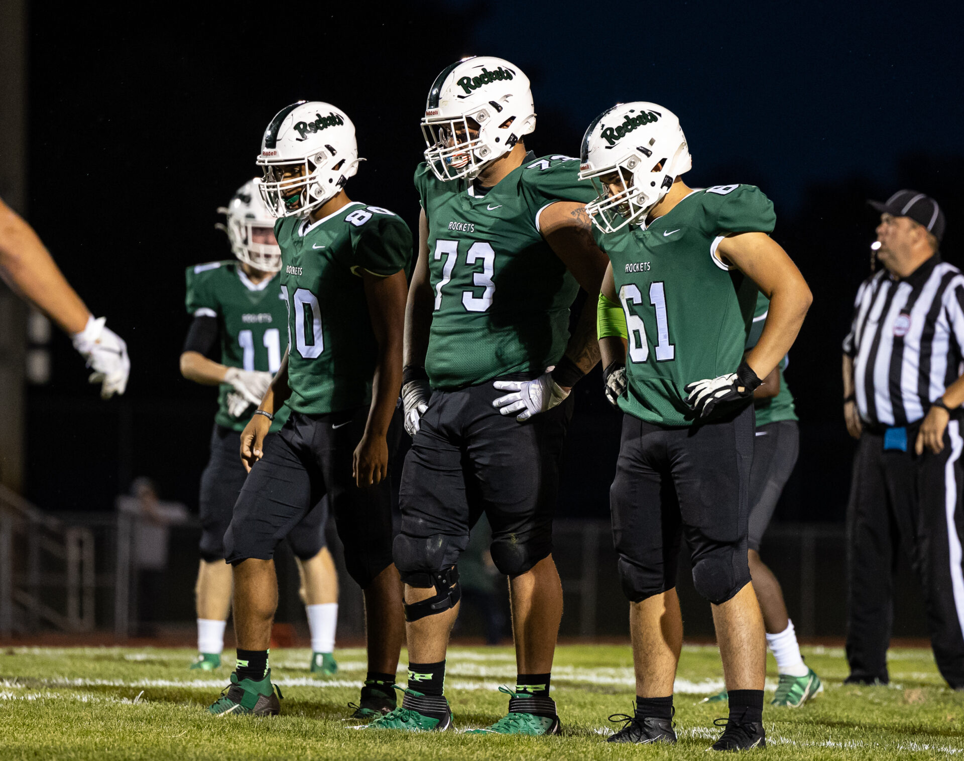Fields (73) and the Rocket defense get ready for a play. Photo/Tonya Pardon