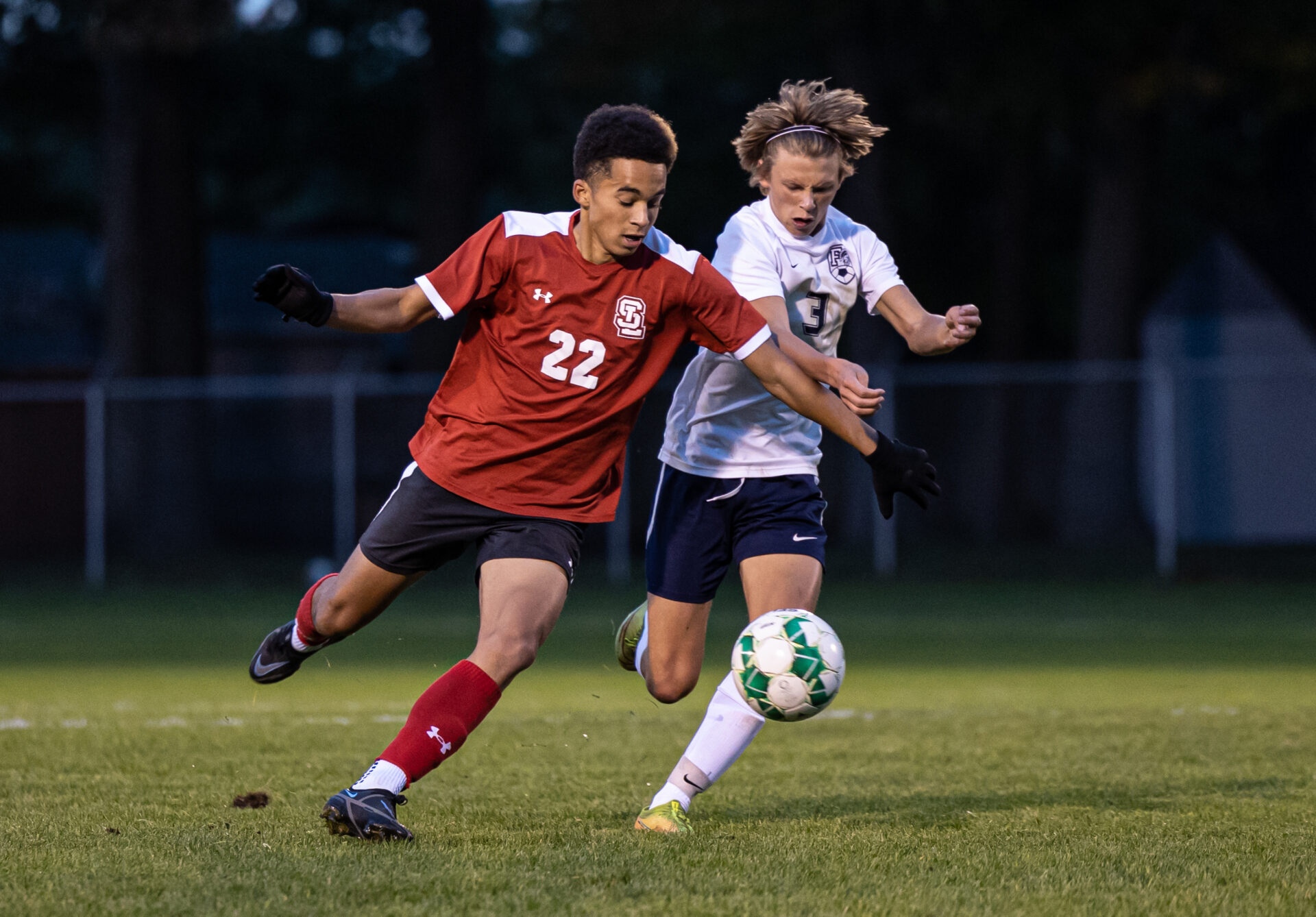 Spring Lake’s Keegan Fritsche battles an opponent for the ball. Photo/Tonya Pardon