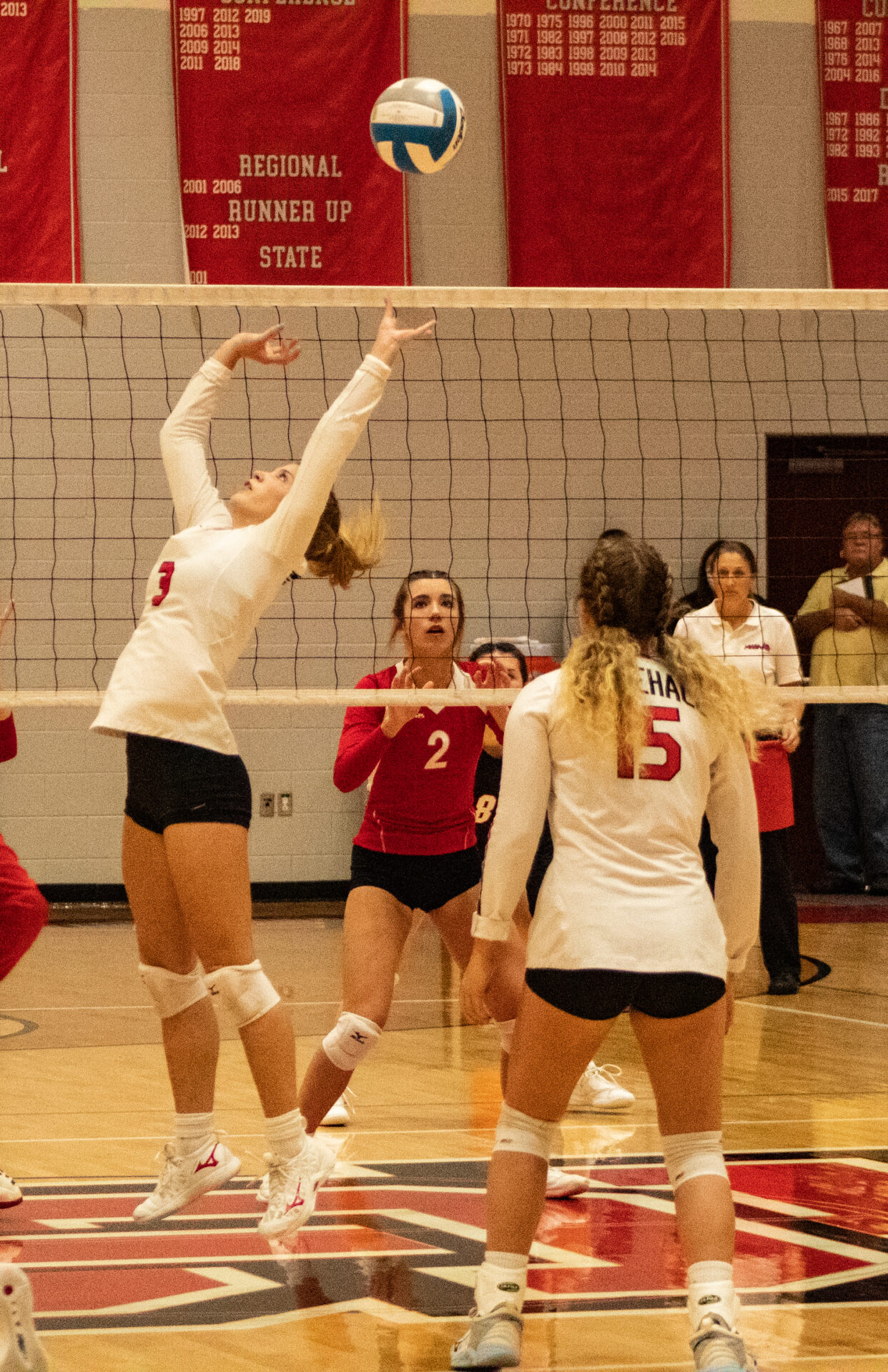 Spring Lake jumped out to a 12-8 lead in the very tight second set with a long service run by freshman Rylee Sabo and several kills at the net by Kalli Lewkowski.
