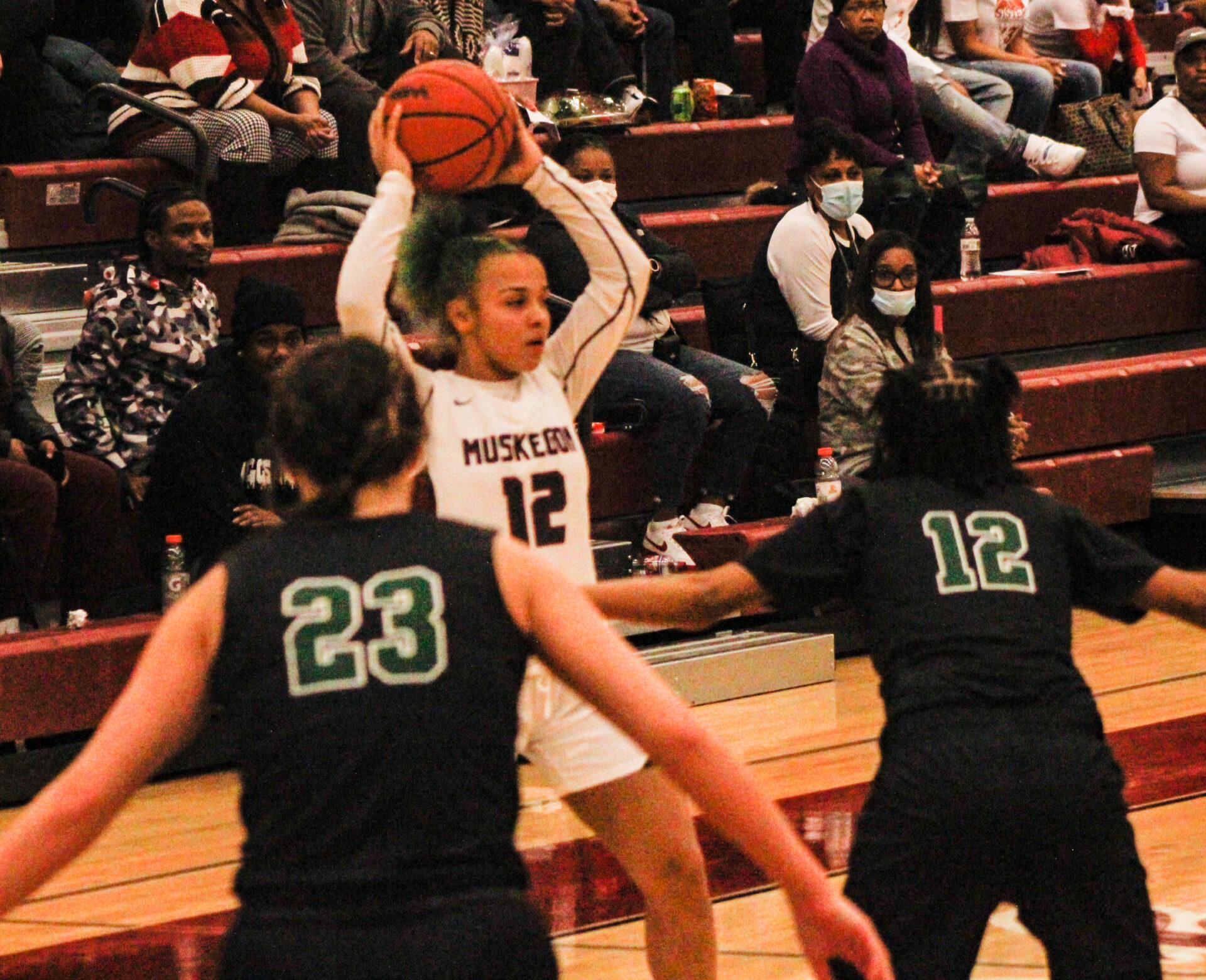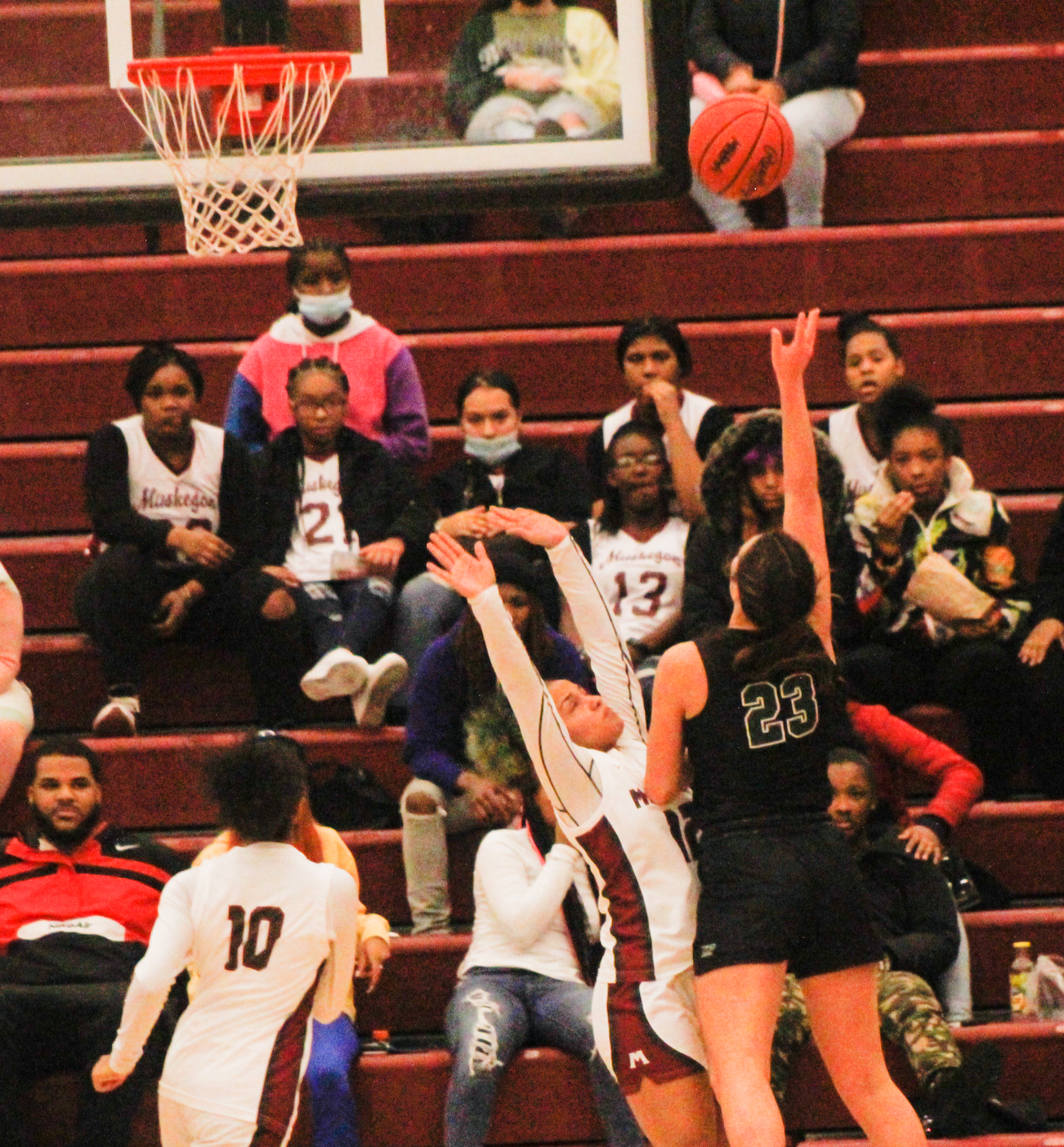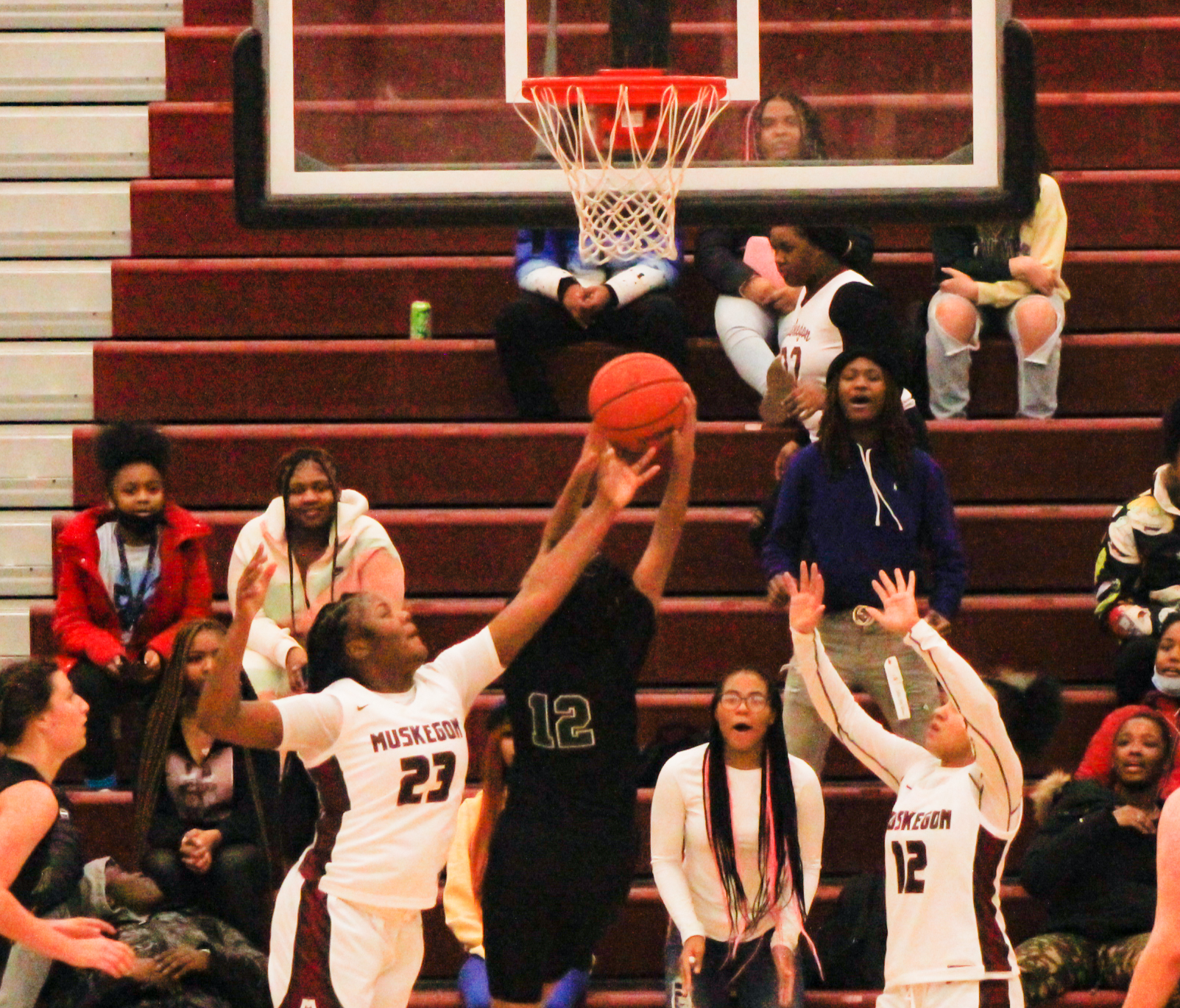 Muskegon’s Ayana Lenox-Brooks hit a free throw with 1:19 left, tying the score 45-45, and it was anybody’s ballgame.