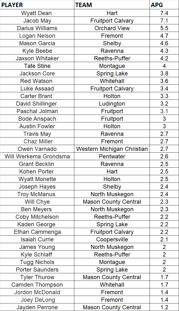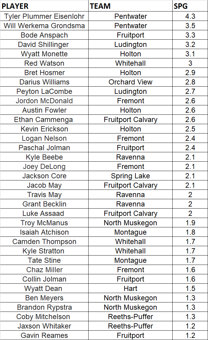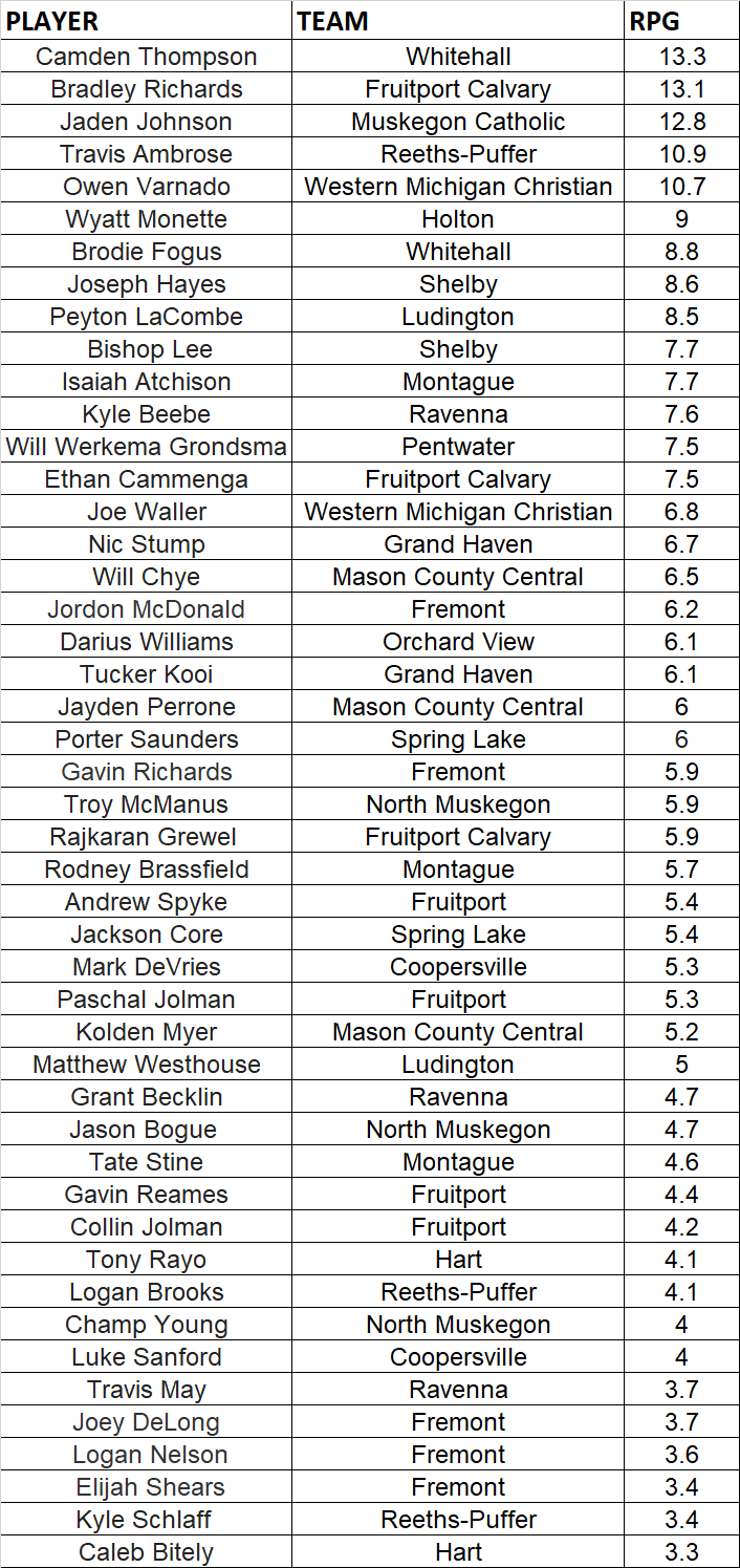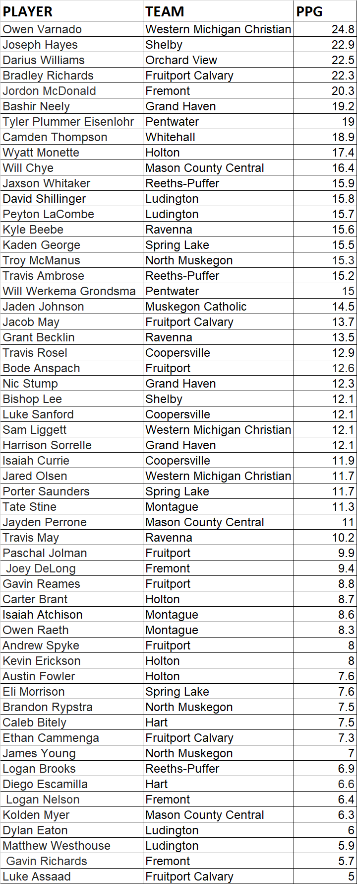 The following are stat leaders for high school boys basketball teams in the MuskegonSports.com coverage area: