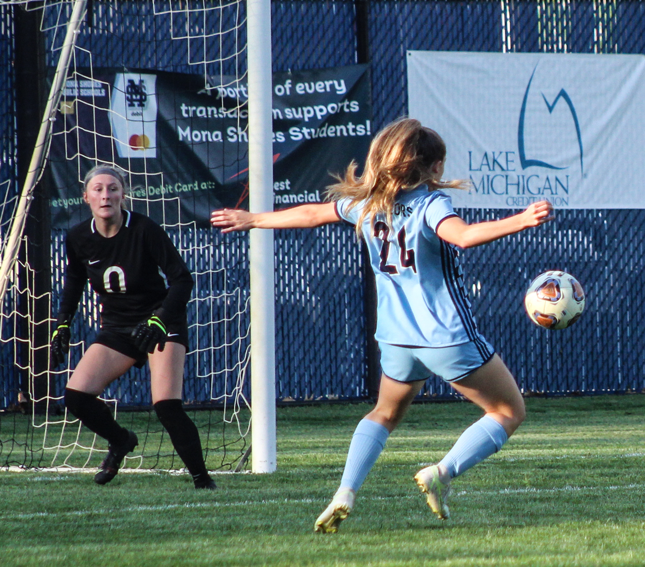 The Sailors turned on the offensive heat early in the first half, and sophomore Shay Norden found the back of the net about 7 ½ minutes into the game, giving Mona Shores a 1-0 lead.