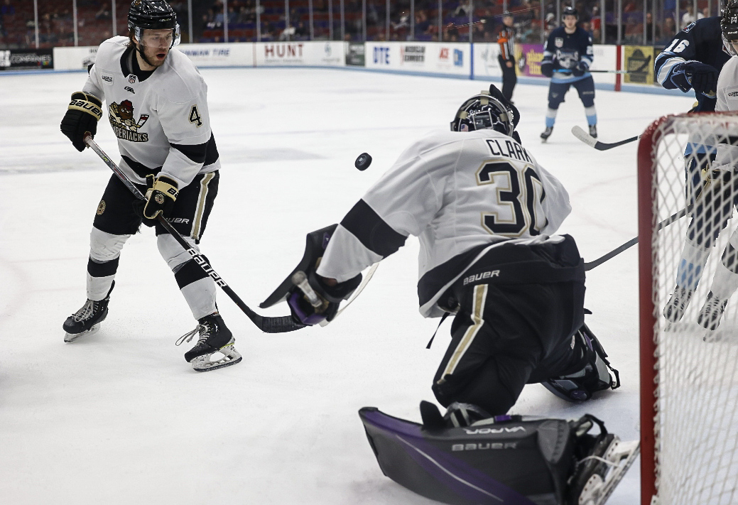 Clark improved to 5-0 in the playoffs with yet another great performance in goal. Muskegon was outshot 39-26 in the game, but the Jacks’ goalie negated that advantage.