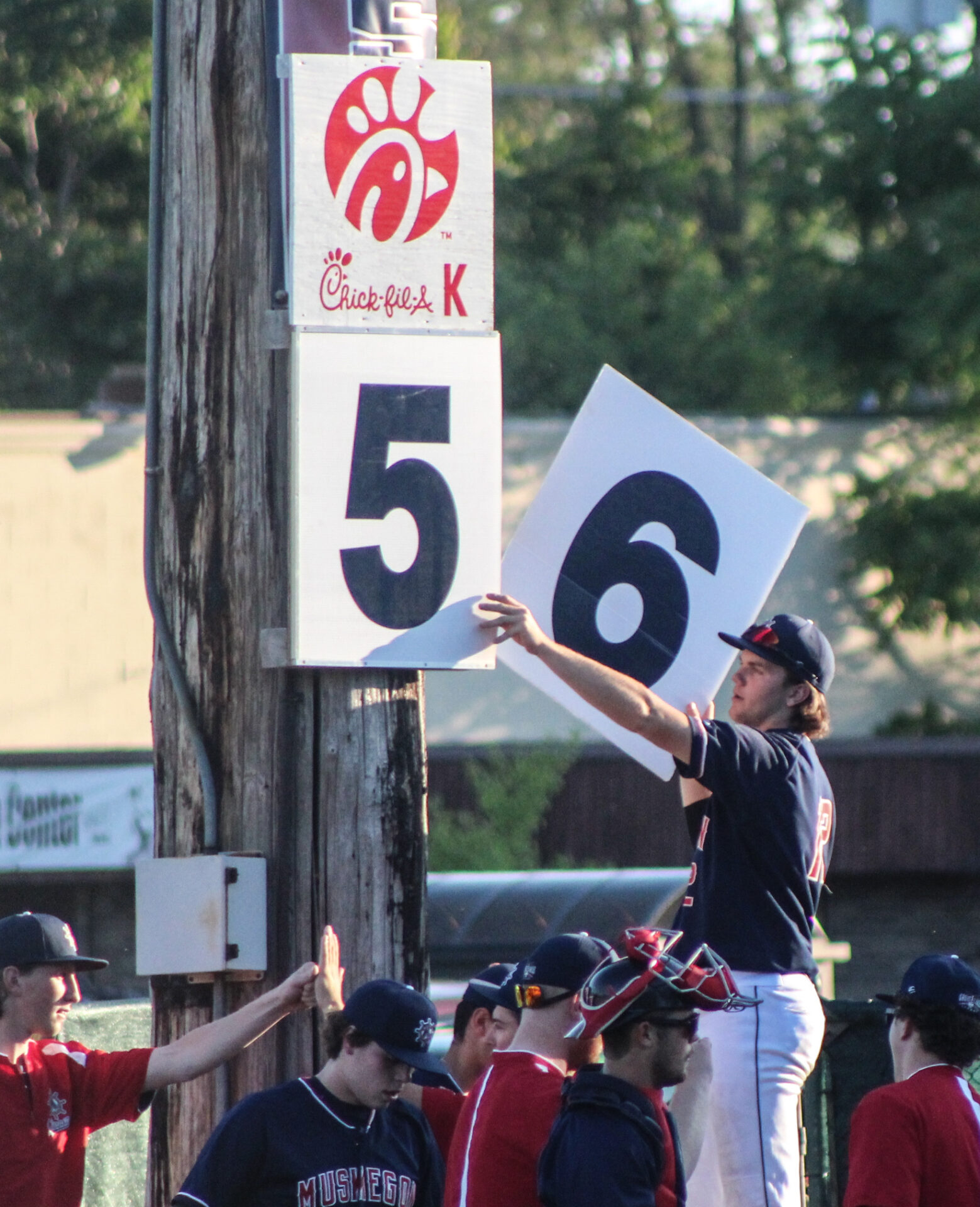 Muskegon added four runs in the seventh inning on an RBI single from Spencer Nelson and a bases-clearing three-run double by Jacob Anderson.