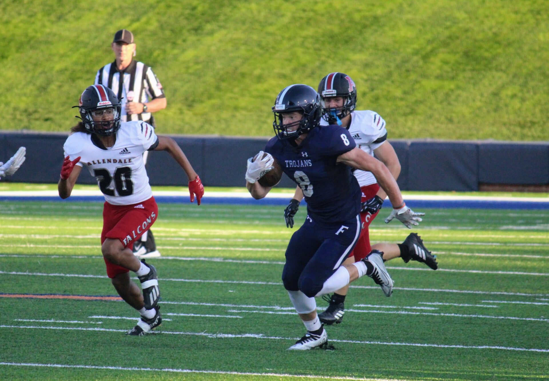 Nash came up with a big play on defense two drives later, intercepting a pass by Falcon quarterback Tyler Sparks. Three plays later, Paschal Jolman scored his second touchdown on a 43-yard run. A fumbled snap spoiled the conversion attempt, leaving the Trojan lead at 22-7 at halftime.