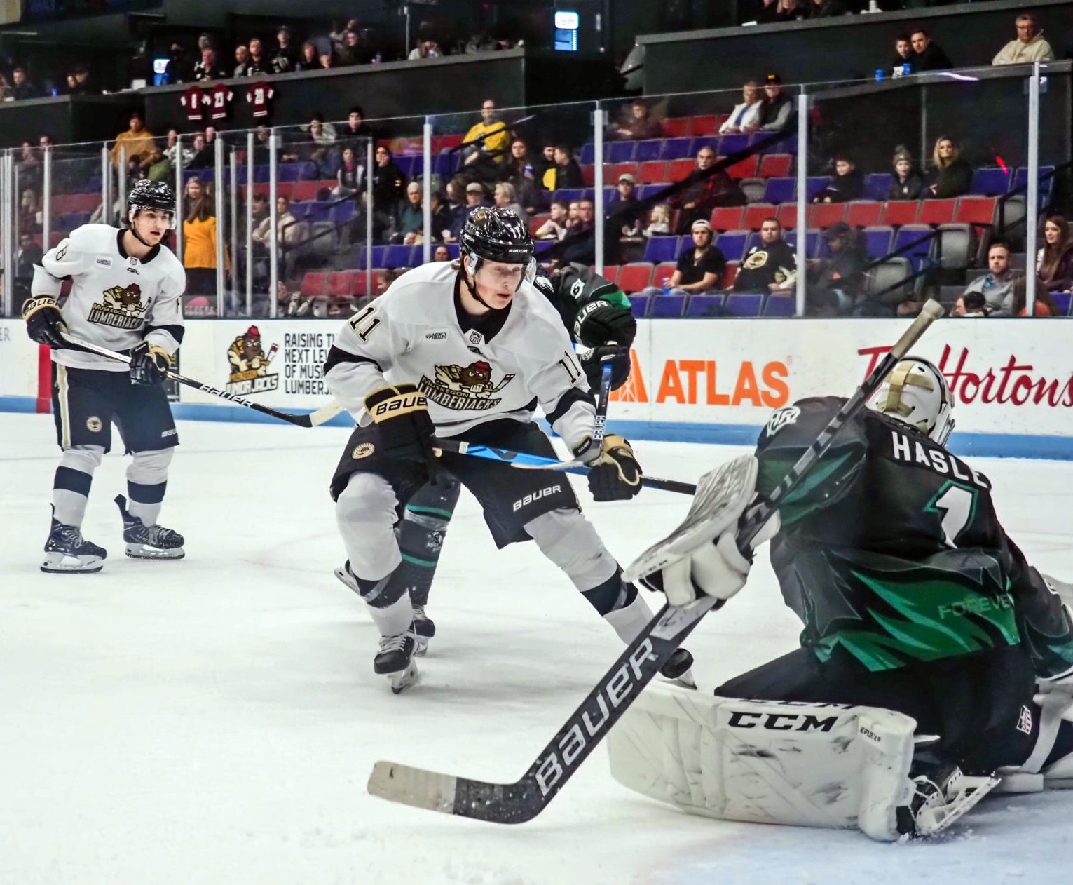 Green Bay outshot the Jacks 28-18. Muskegon goalie Noah Rupprecht took the loss while Green Bay goalie Sebastion Gatto got the win.