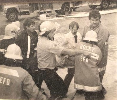 Linstrom and colleagues at the scene of an emergency in Egelston Township years ago.
