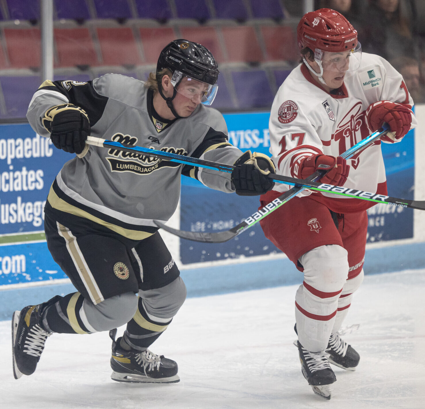 MUSKEGON – The Dubuque Fighting Saints must be getting a little homesick by now, but the Muskegon Lumberjacks have no intention of offering them friendly aid and comfort.