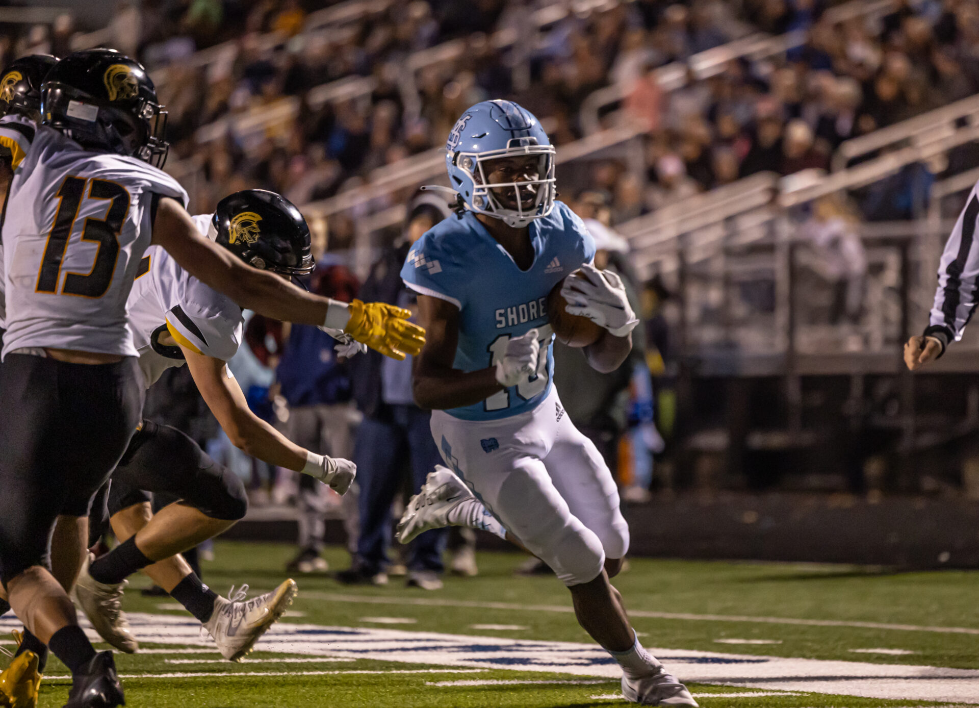 After two more Trojan touchdowns, Mona Shores’ Dominic Piggue broke loose for a 66-yard touchdown run to make the final score 48-20.