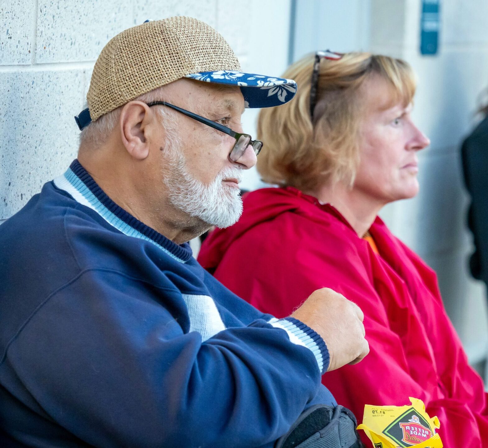 Muskegon County Treasurer Tony Moulatsiotis and his wife Karen watch a Mona Shores game last week.