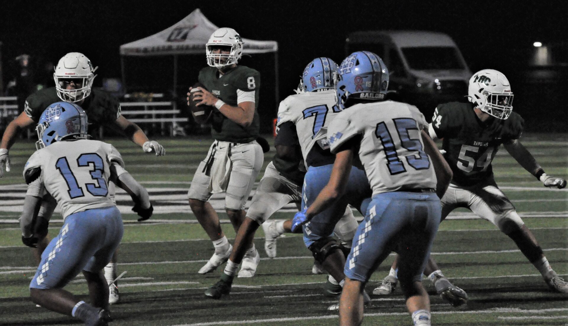 Osterhouse led the Rangers with 225 passing yards and three touchdowns with 86 rushing yards and two touchdowns.