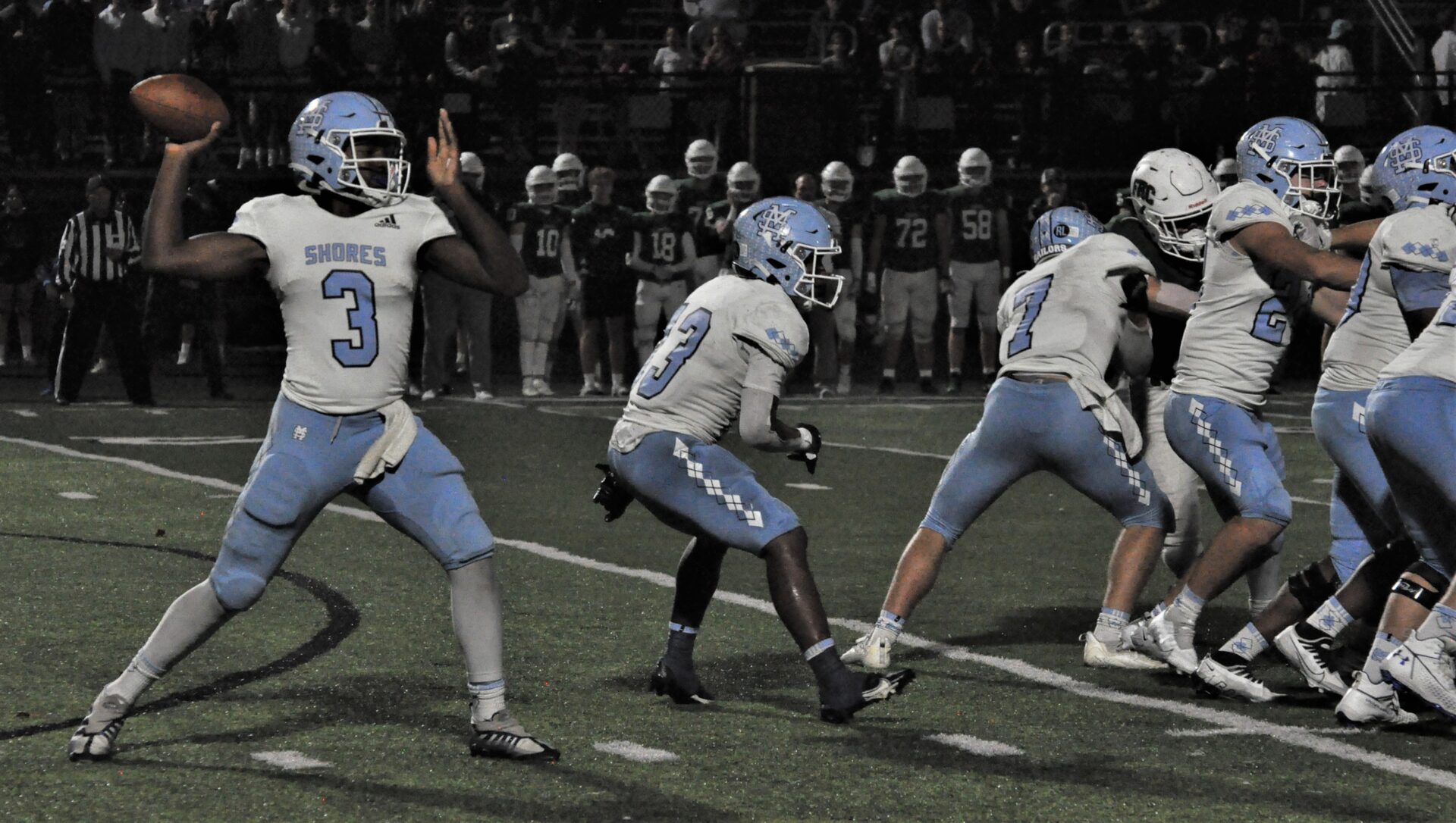 On the first possession of the half, Pittman found Ke’Waun Farnum for yet another long TD pass, this one from 55 yards out, and the PAT gave Mona Shores a 14-7 lead.
