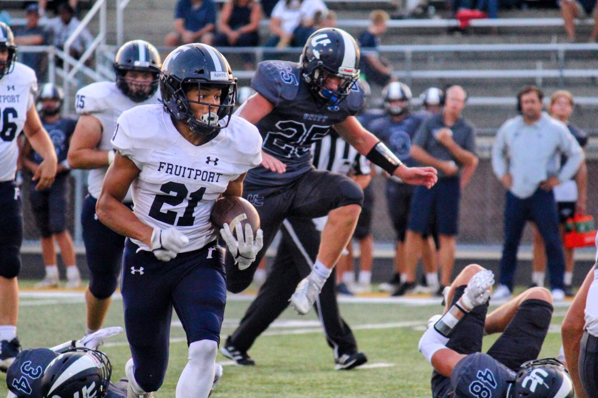 Fruitport is led by its incredible senior running back, Paschal Jolman, who leads the area with 2,035 yards and 24 touchdowns. He has also caught 21 passes for 407 yards and five touchdowns.