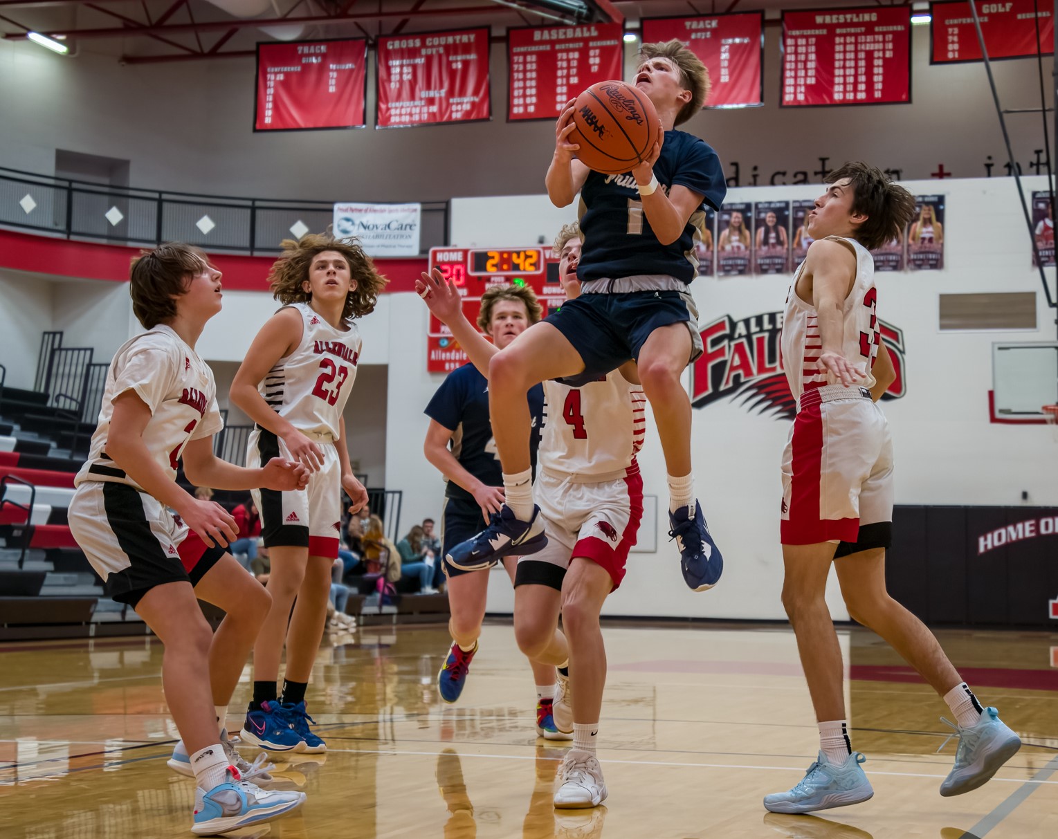 Fruitport’s Bode Anspach (1) drives in for a layup. Photo/Tyler Lirones