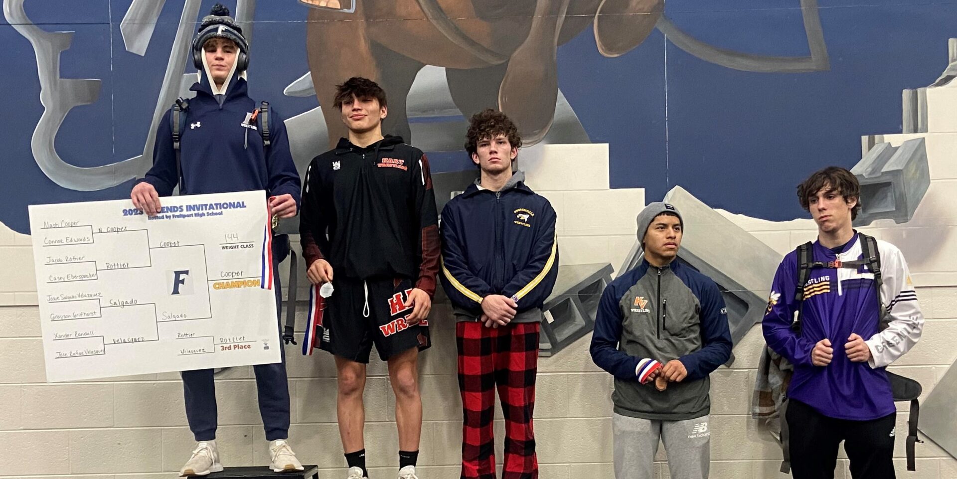 Fruitport’s Nash Cooper went 3-0 on the day and won the 144-pound weight class and his second straight title at the Legends tournament. He improved his record to 16-1 on the season.