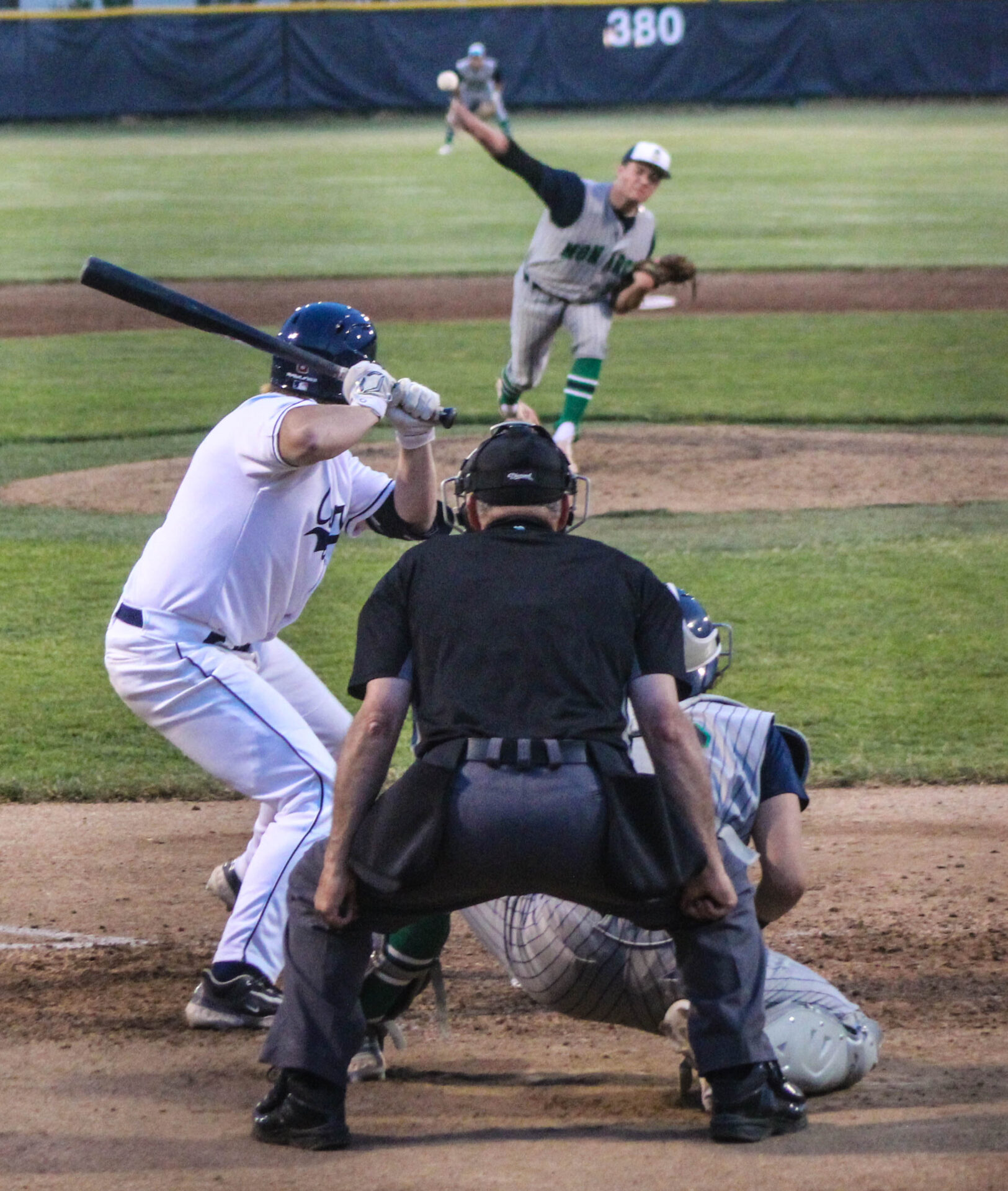 Stoney Smith led off for Muskegon and struck out, Colin Cornwell reached base on a walk, Brandon Scheurer was hit by a pitch, and Luke Kerrins struck out, leaving two on with two outs for Piasecki, who quickly settled the issue on the first pitch.