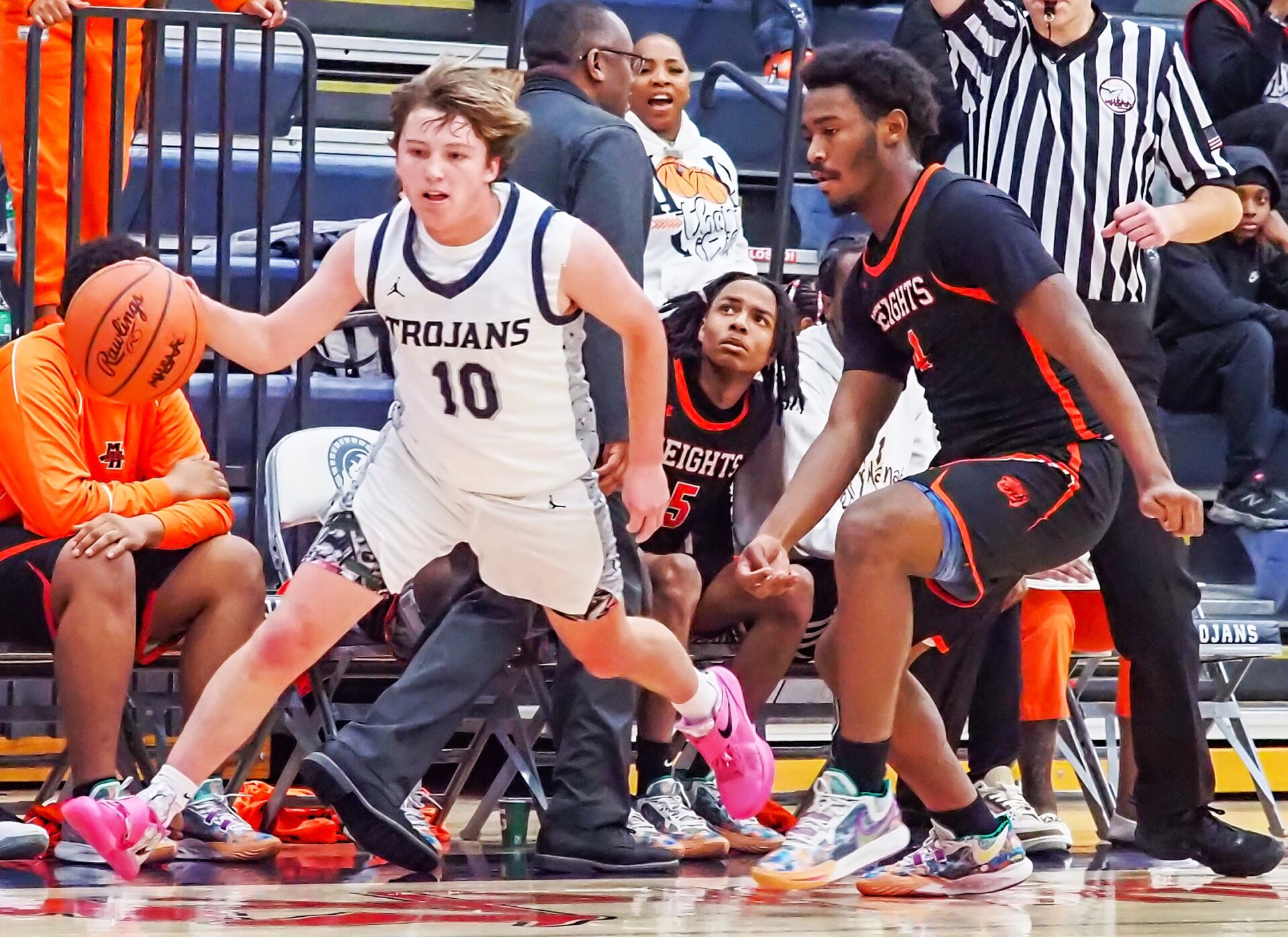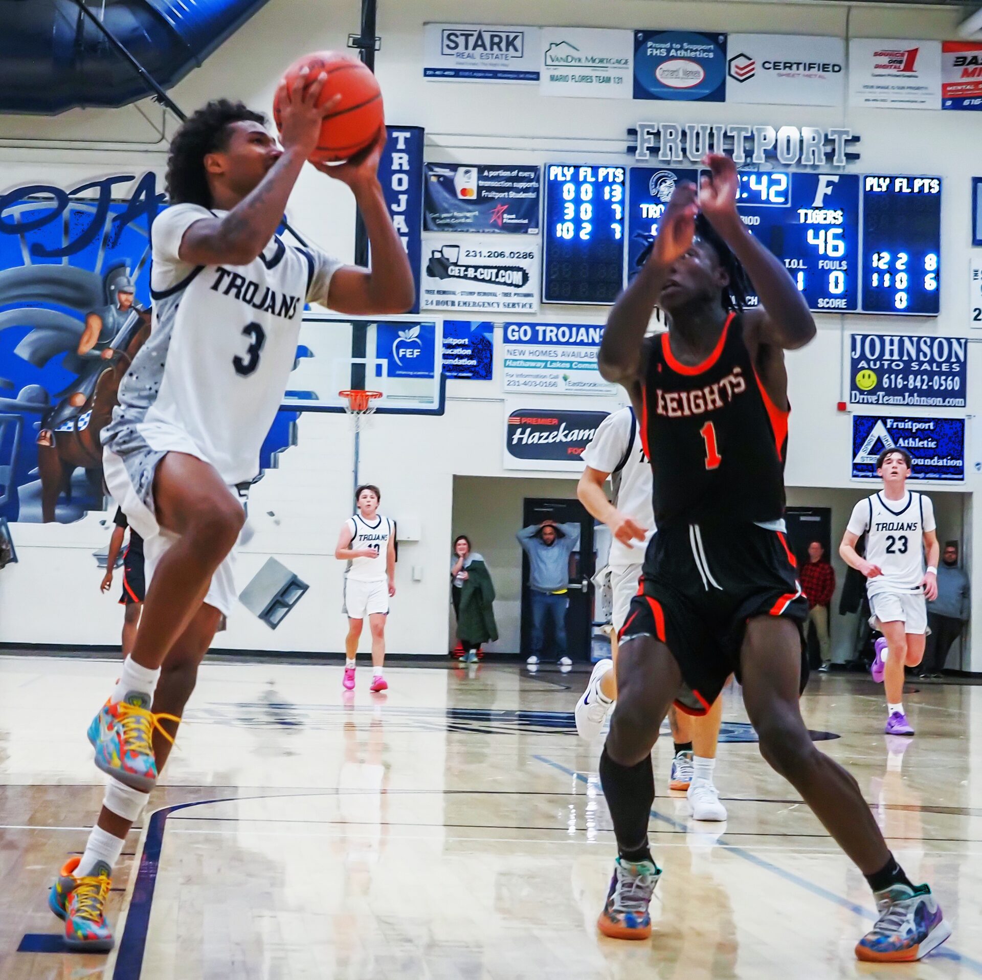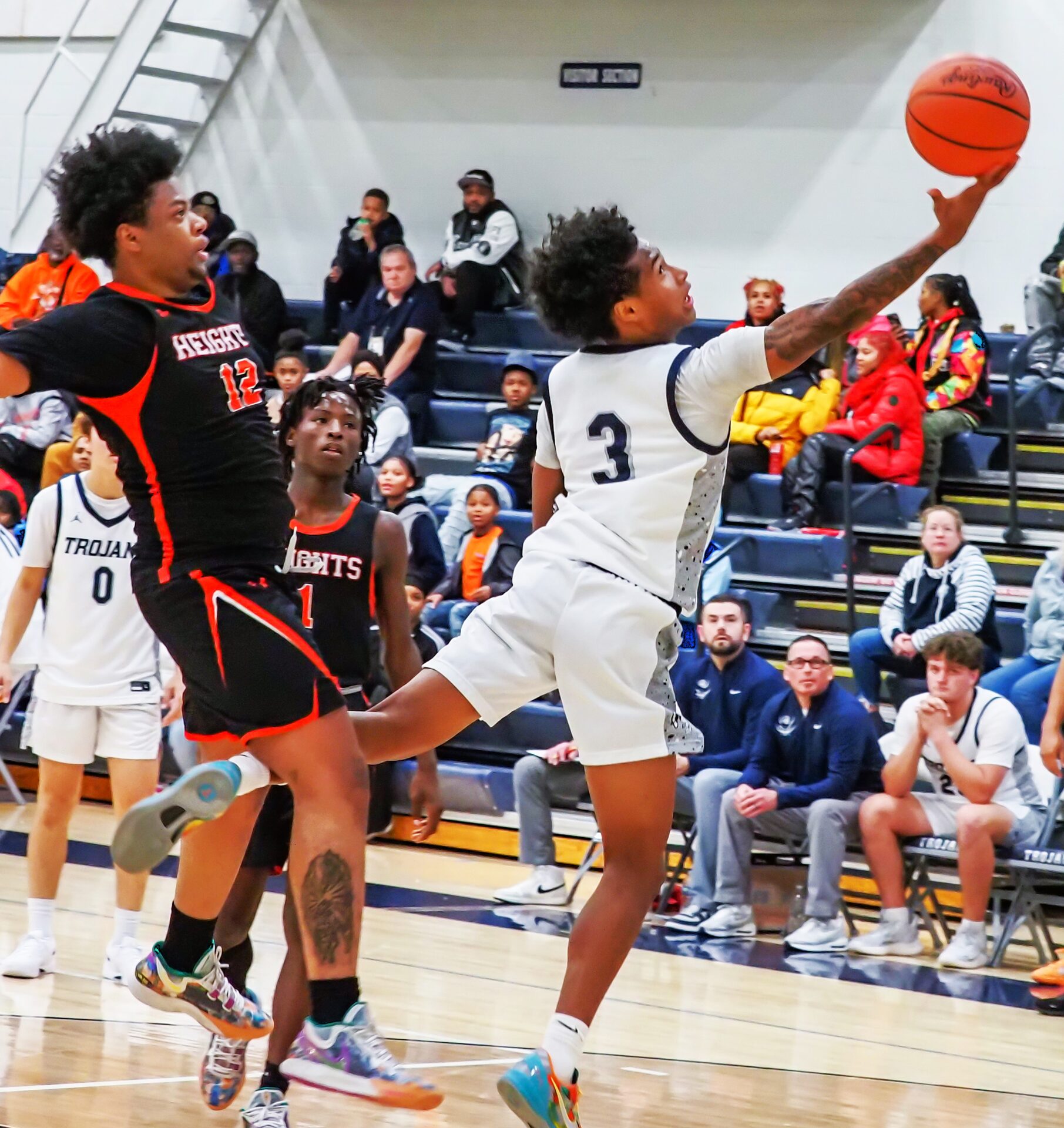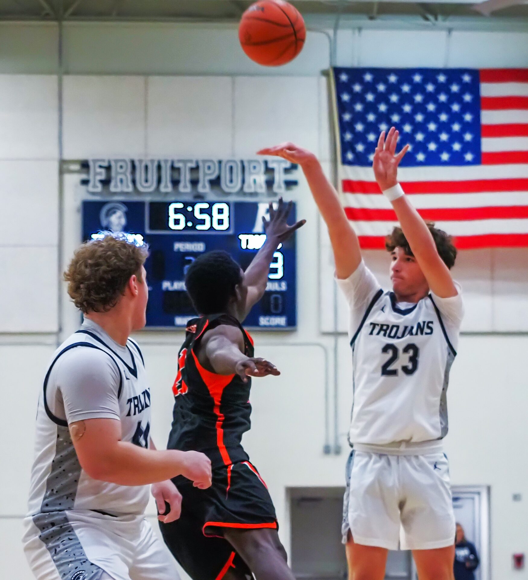 The Trojans gained an edge by hitting 13 triples, compared to only 7 for Muskegon Heights.
