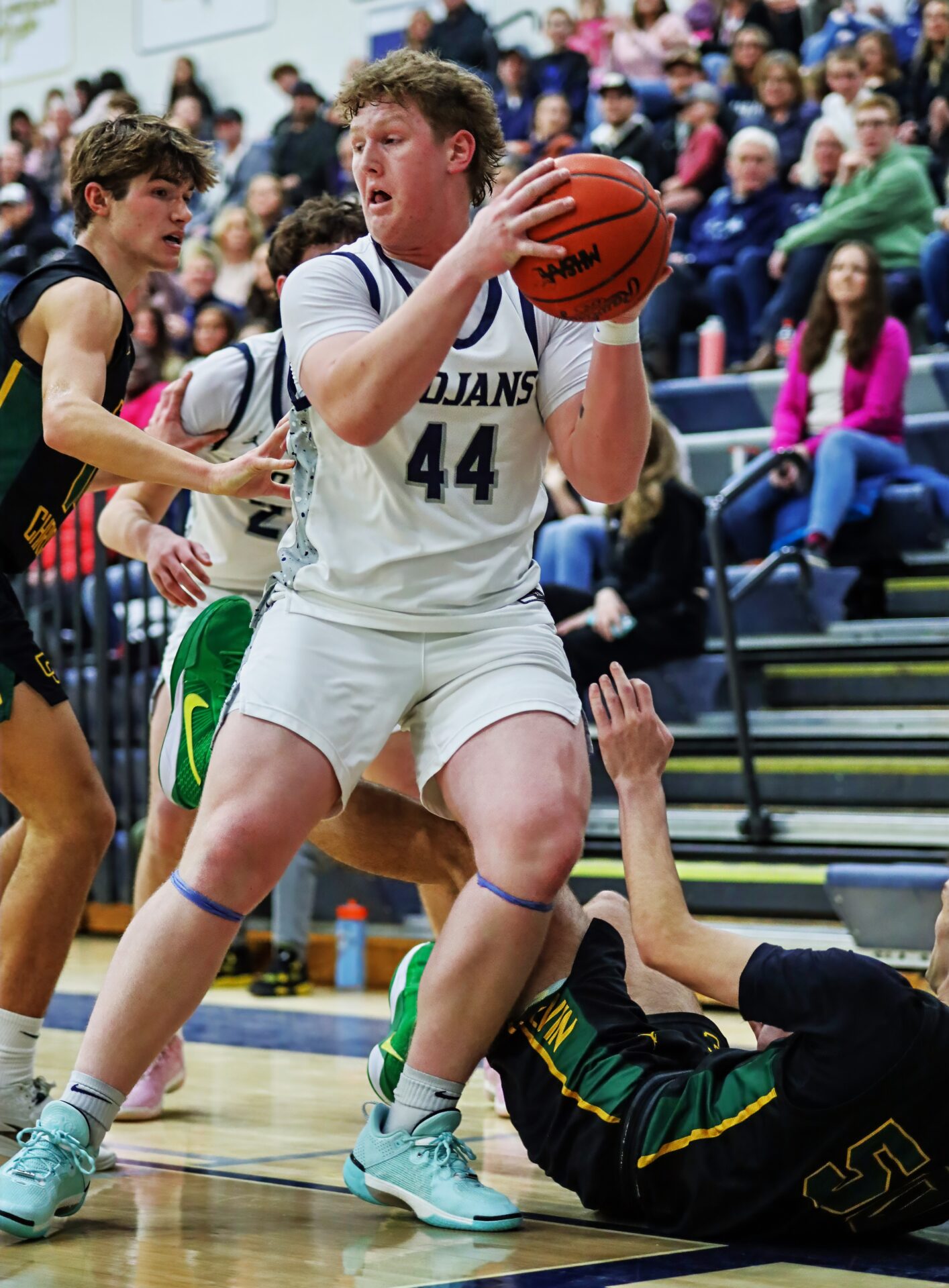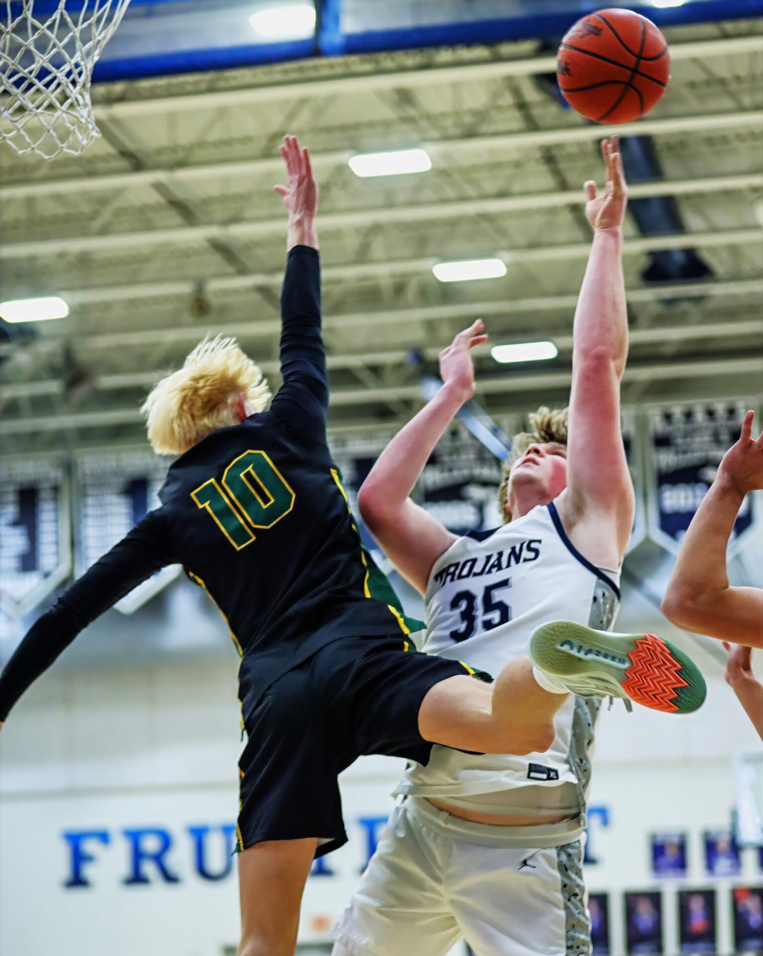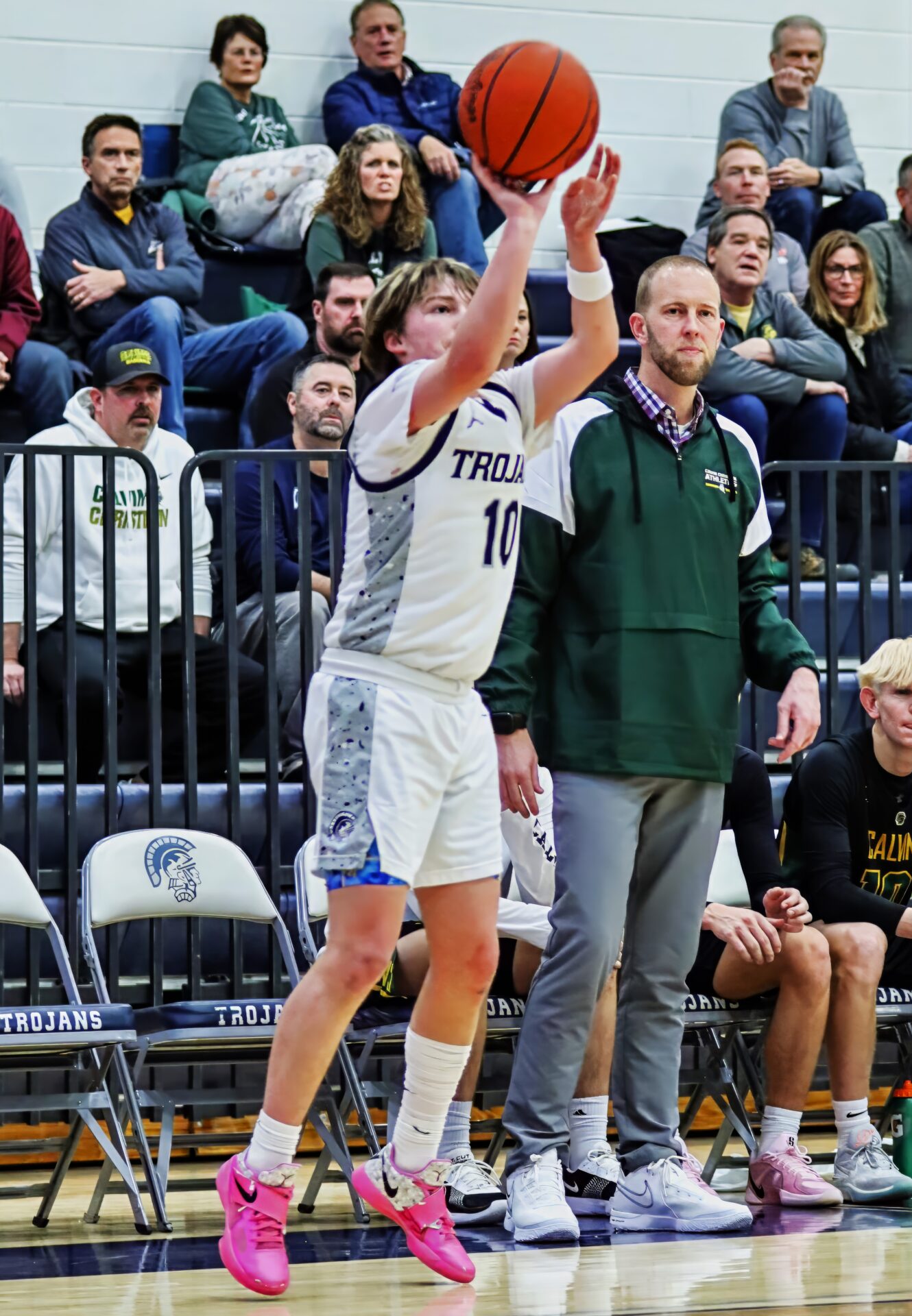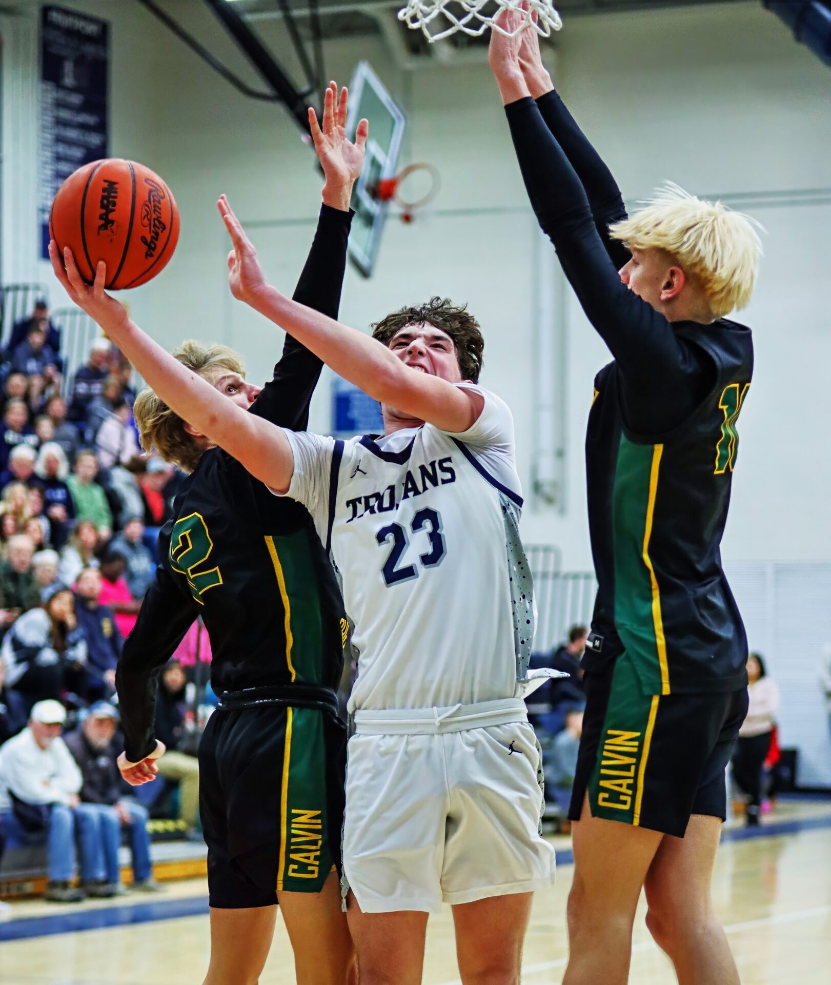 A pair of key baskets in the fourth came from sophomore Brady Hanson, who hit a big three to put the Trojans up by five with 5:07 to play, then added a put-back layup on the Trojans’ next possession.