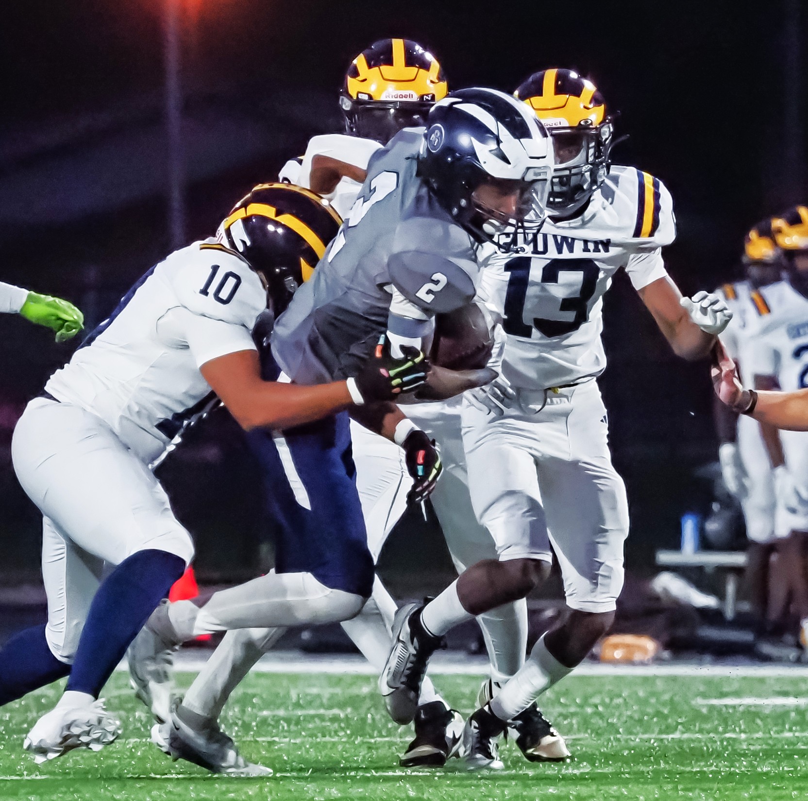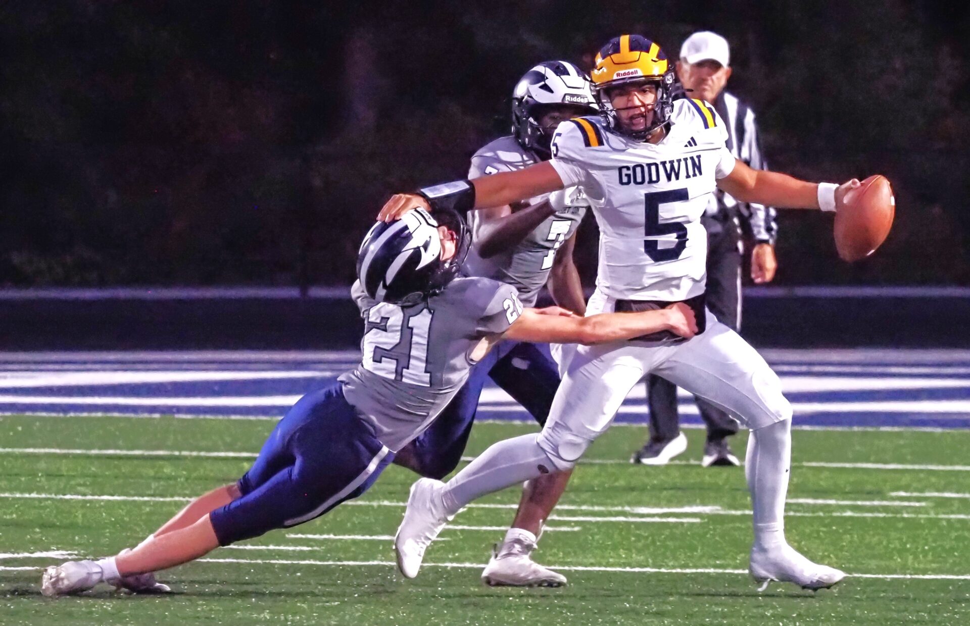 Godwin Heights added a score on a five-yard pass from Forest to Ka’Res Harris, plus a two-point conversion, to make it 24-14 with 4:35 left until halftime. The Wolverines threatened again, but lost a fumble out of the end zone in the closing seconds, and the Trojans kept their 10-point advantage at the break.