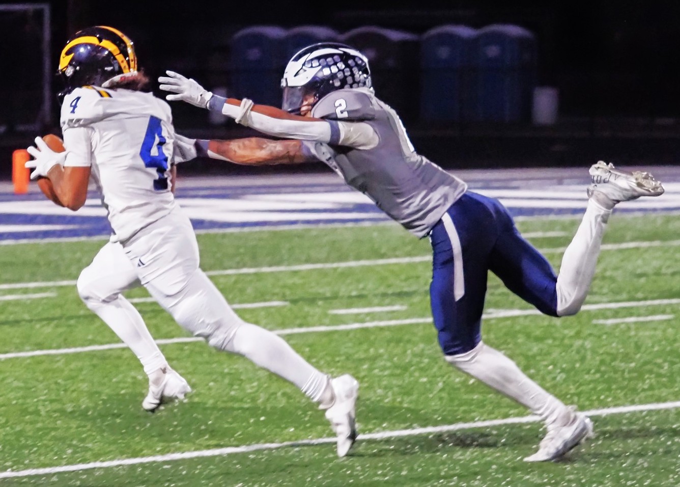 Fruitport’s DayDay Williams dives to make a tackle. Photo/Jeremy Clark
