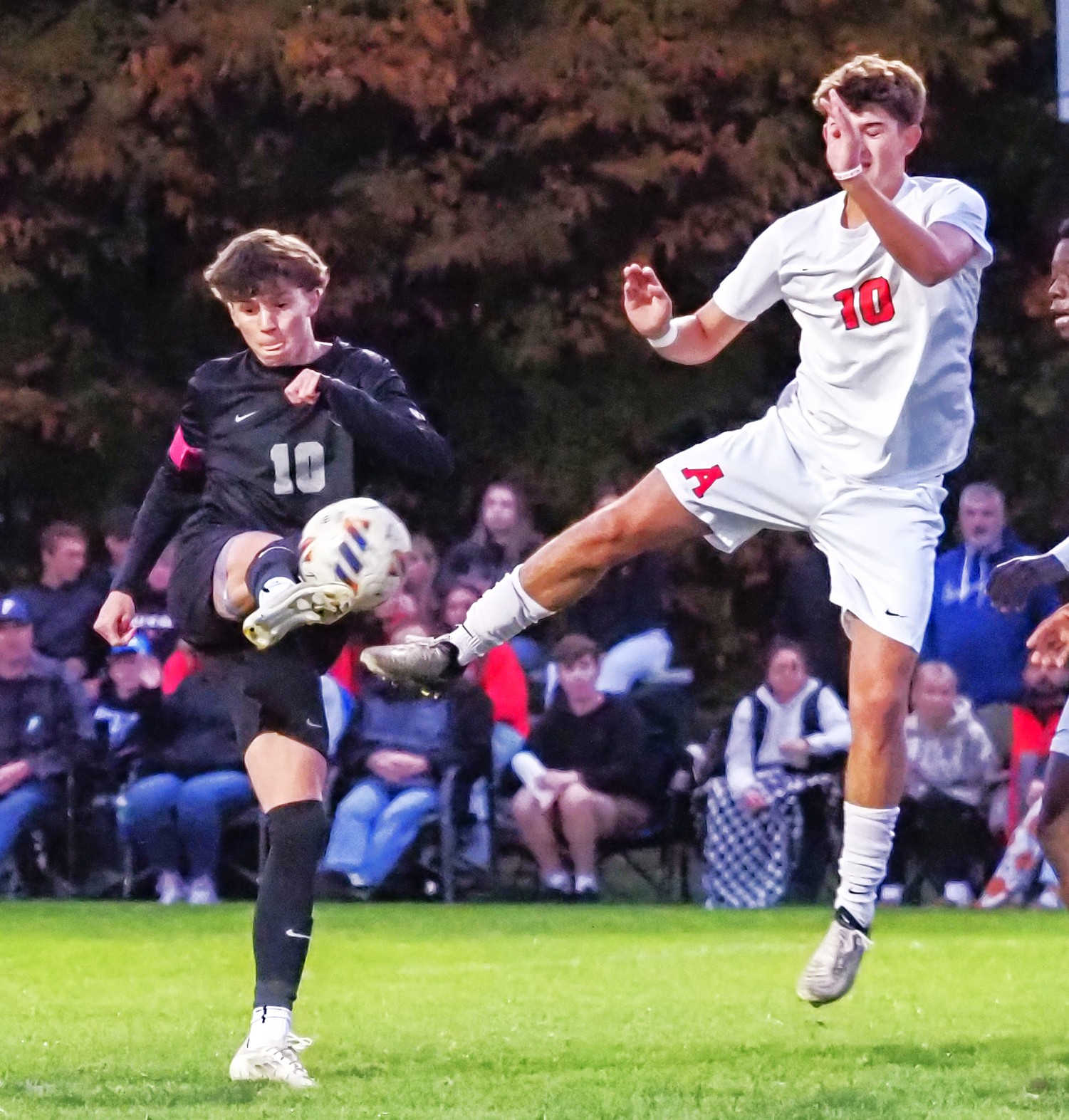 Allendale’s Owen Gasper scored from the middle of a mob that was fighting for the ball in front of the Fruitport net, tying the game at 1-1 with 11:16 left in regulation.