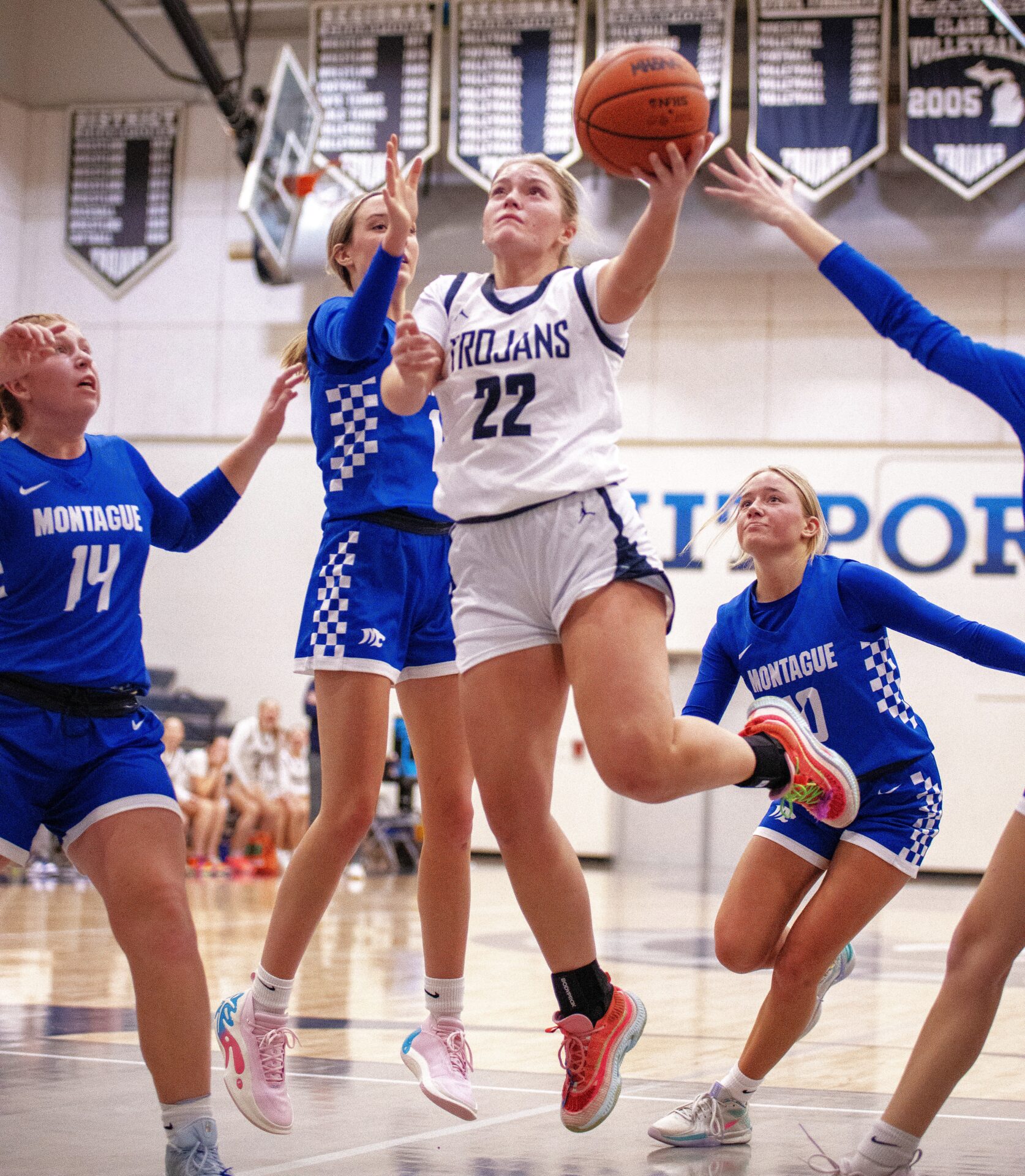 Montague had a 5-0 run early in the third quarter and narrowed the score to 23-19, then Fruitport freshman Regan Wilson made a three-point to increase the lead to 26-19. The Trojans were outscored 9-8 in the quarter and headed to the fourth with a 29-22 edge.