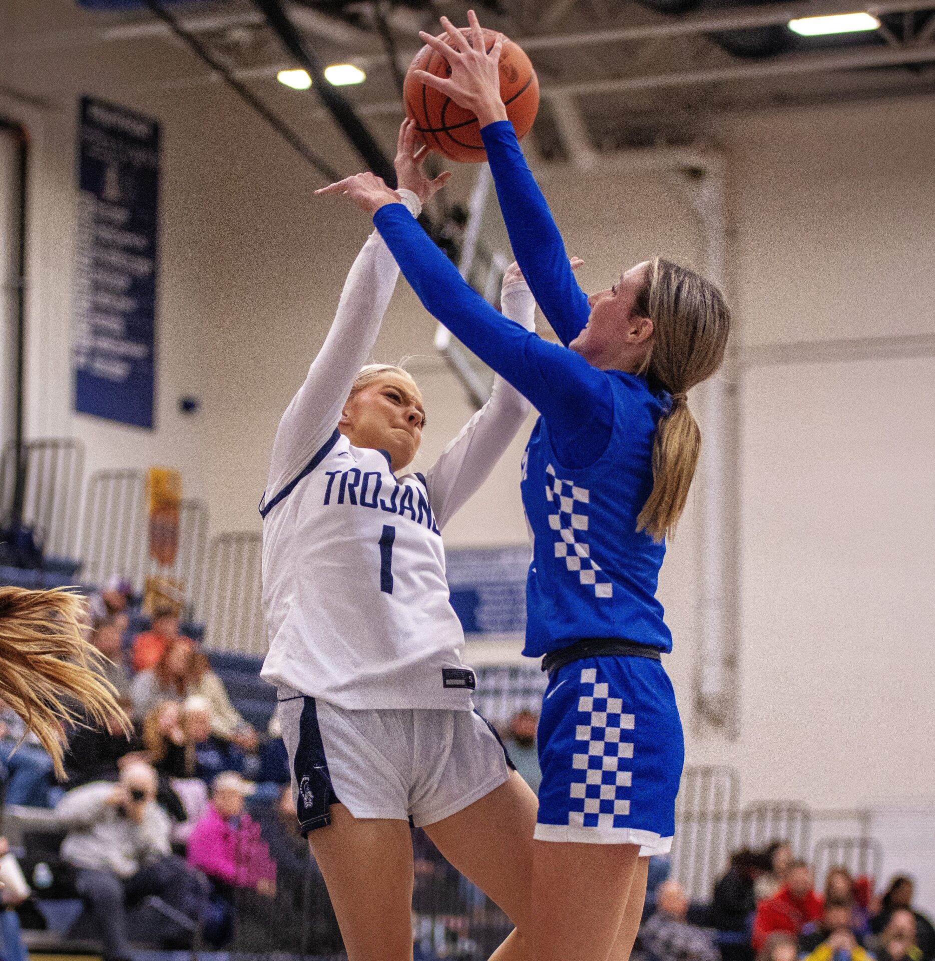 Numerous players stepped up and did important things for the Trojans in Hanson-Wilbur’s absence. That group included three players who combined to score 23 of the Trojans’ 35 points – Kya Tawney (9), Ava Powell (8) and Cierra Fri (6).